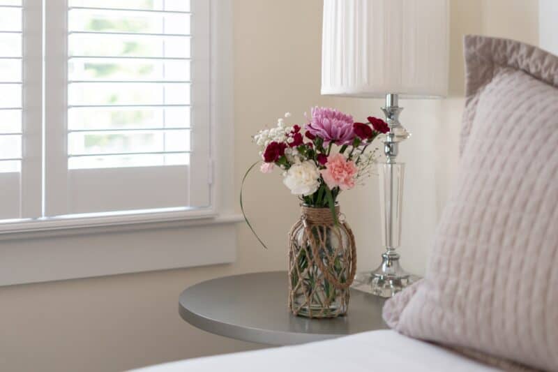 The Cozy Queen room #5 at the Platinum Pebble Boutique Inn is the most cozy of the rooms on the property. It is our most affordable room while offering one of the best views over the pool and gardens from the second floor. Guests in the Cozy Queen room enjoy a queen-size bed, sitting area for one, small bureau, twenty six inch flat screen TV/DVD, and a private bath with walk-in glass & tile shower with rain head. A second adjustable head completes the spa-like experience. Treat yourself to luxury in the Cozy Queen room at the Platinum Pebble Boutique Inn.