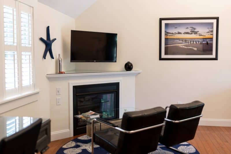 Situated in the Carriage House is Luxury King room #8 at the Platinum Pebble Boutique Inn and is one of the most private and spacious on the property. Guests who stay in Luxury King room #8 enjoy a private entrance through the rose garden. The main building of the inn and all of its amenities are always available but, guests do not have to come and go through the inn as they can park directly behind their room and access the private entrance.